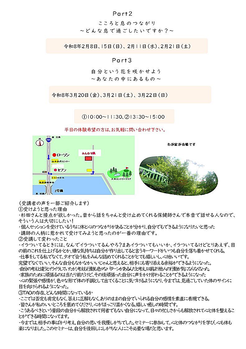 地域活動「女性の健康×笑顔」セルフケアセミナーワークショップ体験会 令和8年度受講生募集