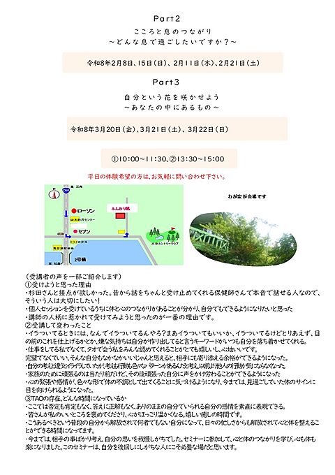 今回は地域で行っています「女性の健康×笑顔」のセルフケアセミナーのご案内です。